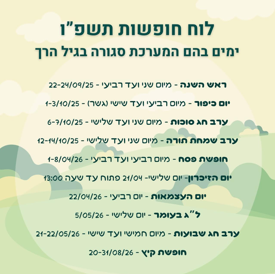 נספח ה’ – לוחמועדי חופשות תשפ”ו