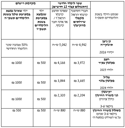 קיבוץ הראל – הסכם חינוך לגיל הרך תשפ”ז